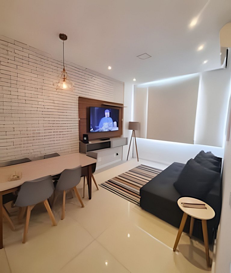 Excelente apartamento com vaga de estacionamento na melhor localização de Copacabana. Apartamento com dois quartos e um banheiro e meio (vazo e chuveiro). Ar condicionado nos cômodos, muito arejado com luz natural.
